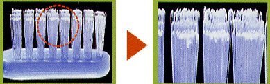 テーパード加工毛先はテーパード加工で、歯頸部、隣接面の歯垢清掃 効果にすぐれています。
