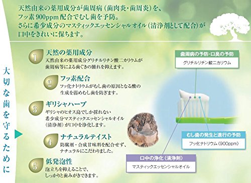 さらに希少成分のマスティックエッセンシャルオイル(清浄剤として配合)が口中をきれいに保ちます。