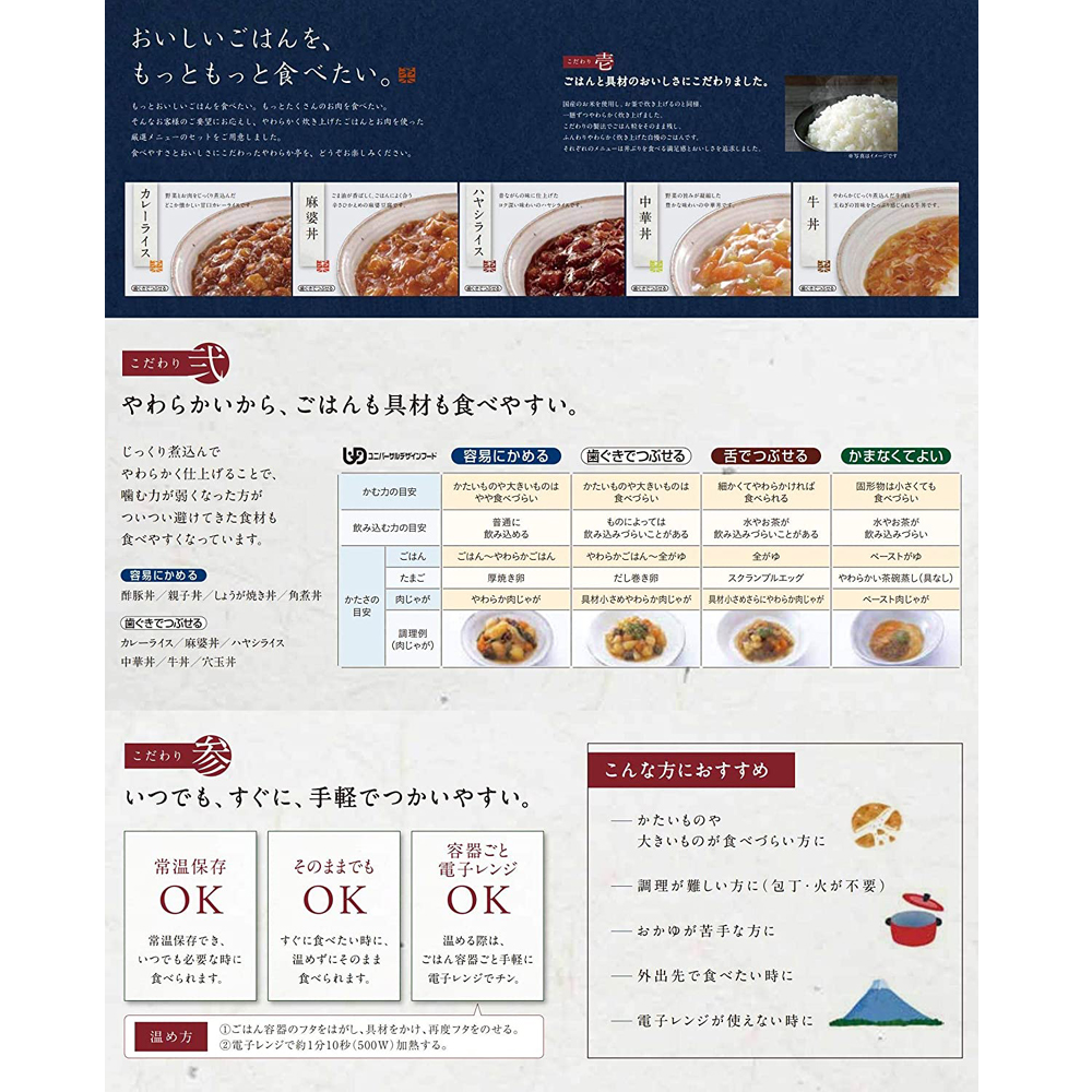 【歯ぐきでつぶせる】カレーライス・ハヤシライス・麻婆丼・中華丼・牛丼