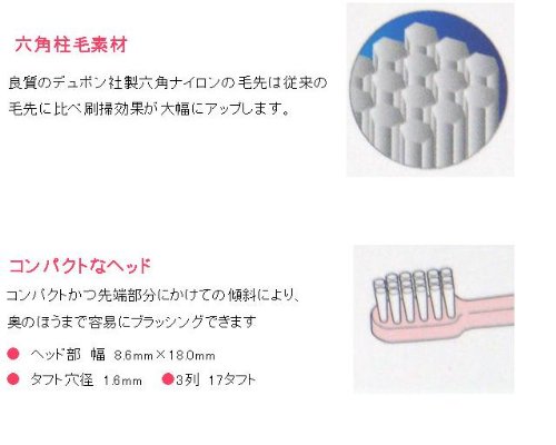 良質のデュポン社製六角ナイロンの毛先は従来の毛先に比べ