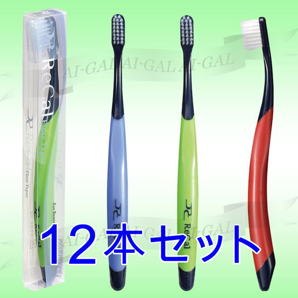 リカル歯ブラシ フロステーパー毛 ブラックハンドル キャップ+プラケース付き 12本アソート